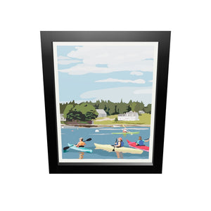 Kayaking in Port Clyde Art Print 8" x 10" Framed Wall Poster By Alan Claude - Maine