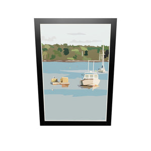 Lobster Boat in Round Pond Harbor Art Print 24" x 36" Vertical Framed Wall Poster By Alan Claude - Maine