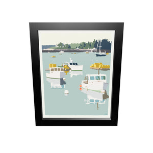 Lobster Boats on a Sunday Morning Art Print 8" x 10" Framed Wall Poster By Alan Claude - Maine