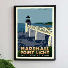 Marshall Point Light Art Print 18" x 24" Travel Poster By Alan Claude - Maine