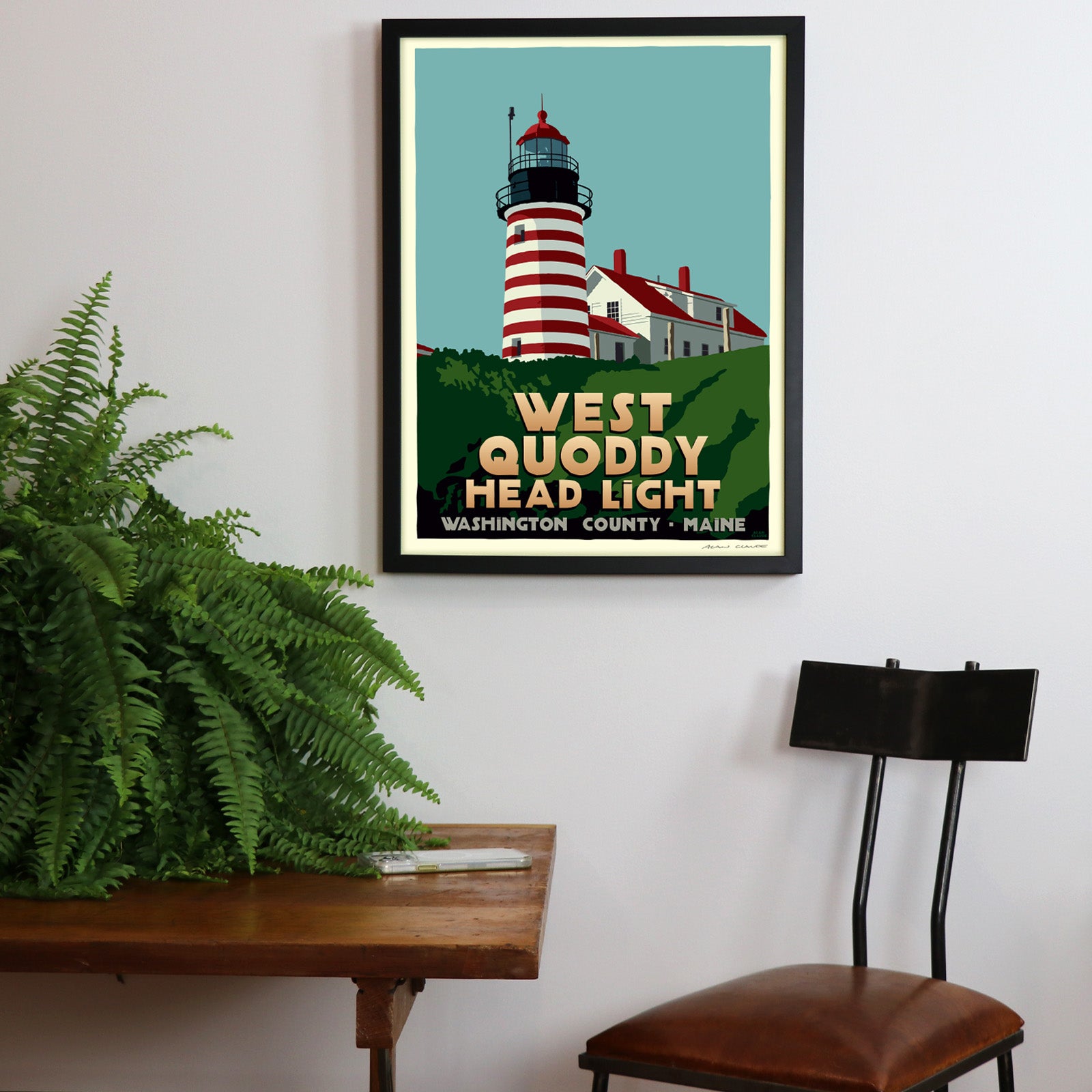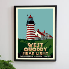 West Quoddy Head Light Art Print 18" x 24" Framed Travel Poster By Alan Claude - Maine