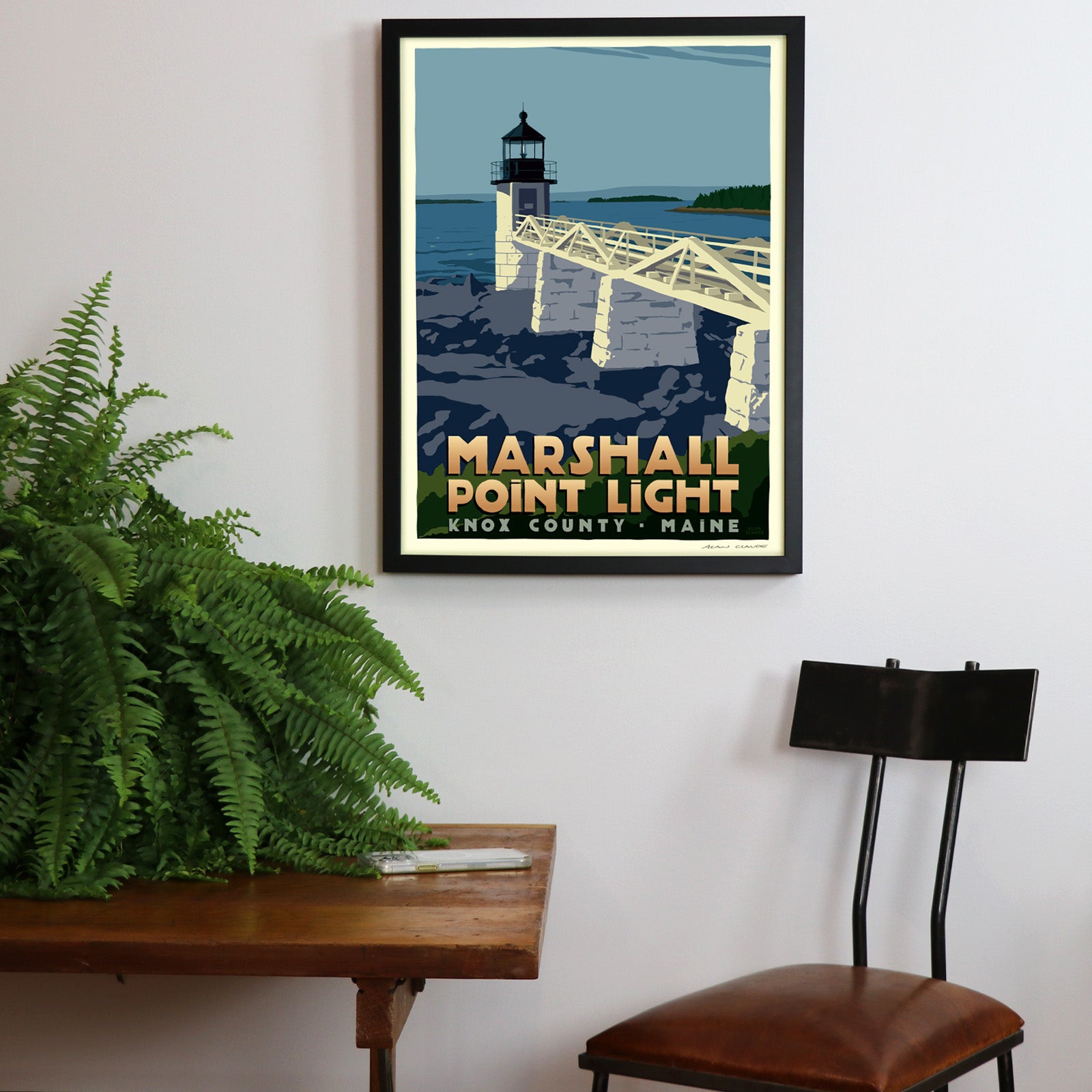 Marshall Point Light Art Print 18" x 24" Framed Travel Poster By Alan Claude - Maine