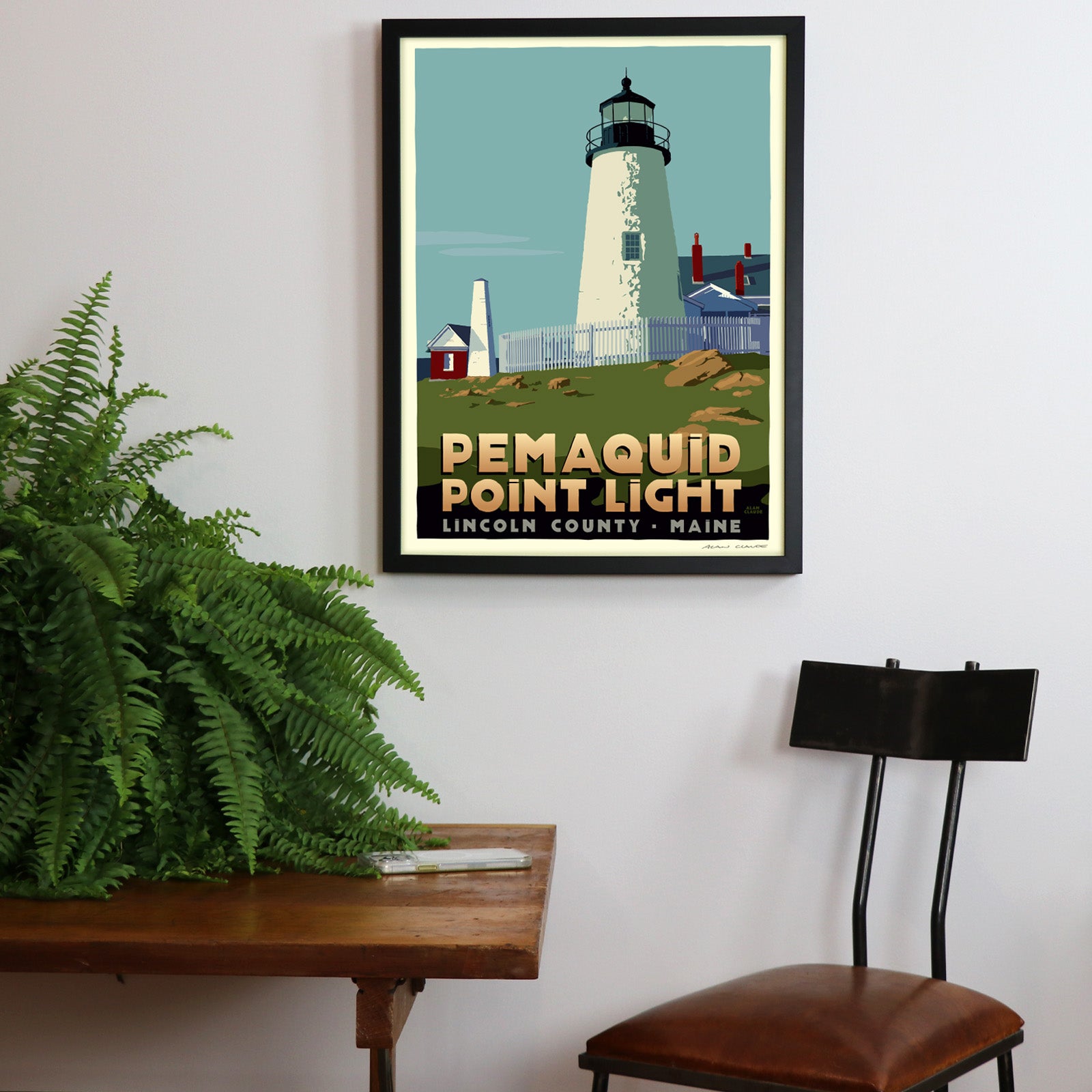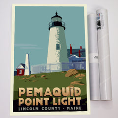 Pemaquid Point Light Art Print 18" x 24" Travel Poster By Alan Claude - Maine