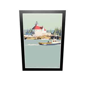 Lobstering At The Cuckolds Light Art Print 24" x 36" Framed Wall Poster By Alan Claude - Maine