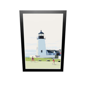 Pemaquid Bicycle Girls Art Print 24" x 36" Framed Wall Poster By Alan Claude - Maine