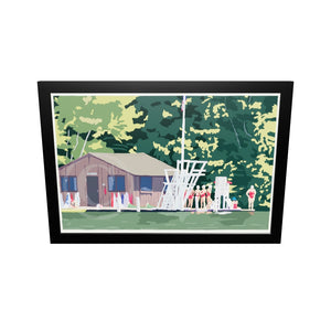 Sebago Lake Swimmers Art Print 24" x 36" Horizontal Framed Wall Poster By Alan Claude - Maine