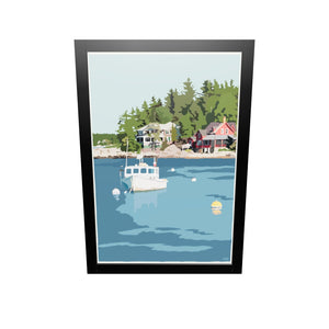 Lobster Boat at Five Islands Art Print 24" x 36" Framed Travel Poster By Alan Claude - Maine