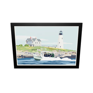 Wood Island Light Art Print 24" x 36" Framed Wall Poster By Alan Claude - Maine