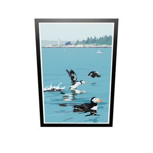 Puffins At Franklin Island Art Print 36" x 53" Grand View Framed Wall Poster- Maine