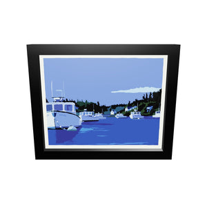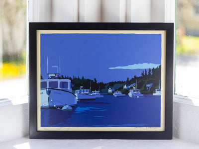 Moonlight Over Port Clyde Art Print 8" x 10" Horizontal Framed Wall Poster By Alan Claude - Maine