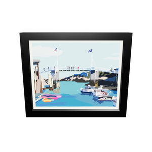 Perkins Cove Drawbridge Art Print 8" x 10" Horizontal Framed Travel Poster By Alan Claude - Maine