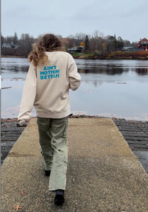 Snuggle into this ultra-soft sweatshirt (unisex) from Artforms Brand Apparel, crafted from a cozy blend of 60% cotton and 40% polyester. It promises comfy warmth every time you wear it, available in sizes from small up to double XL. Color: Bone - Screen printed in Maine.