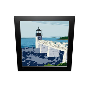 Marshall Point Light Art Print 8" x 8" Framed Wall Poster By Alan Claude - Maine