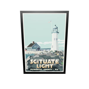 Scituate Light Art Print 36" x 53" Framed Travel Poster By Alan Claude - Massachusetts