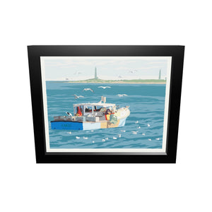 Lobstering at Cape Ann Art Print 8" x 10" Horizontal Framed Wall Poster- Massachusetts