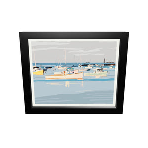 Sunset at Minot's Ledge Light Art Print 8" x 10" Horizontal Framed Wall Poster By Alan Claude - Massachusetts