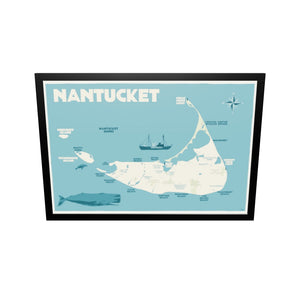Nantucket Map Art Print 36" x 53" Framed Travel Poster By Alan Claude - Massachusetts