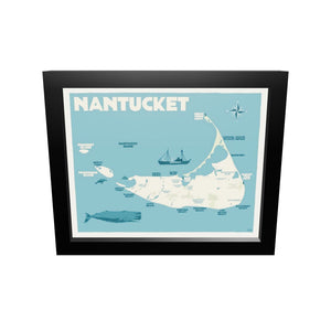 Nantucket Map Art Print 8" x 10" Horizontal Framed Travel Poster By Alan Claude - Massachusetts