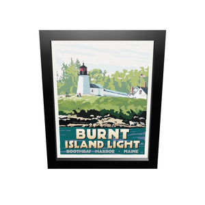 Burnt Island Light Art Print 8" x 10" Framed Travel Poster - Maine