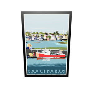 Portsmouth Lobster Boat Art Print 36" x 53" Framed Travel Poster By Alan Claude - New Hampshire