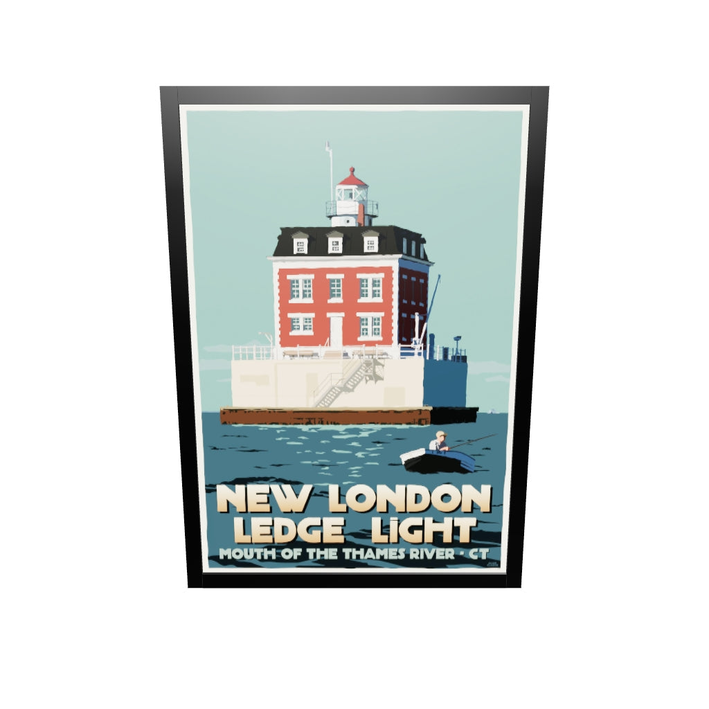 New London Ledge Light Art Print 24" x 36" Framed Travel Poster By Alan Claude - Connecticut