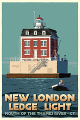 New London Ledge Light Art Print 24" x 36" Travel Poster By Alan Claude - Connecticut
