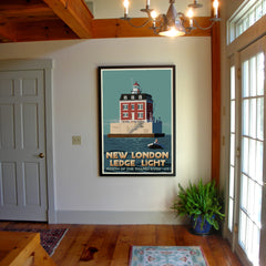 New London Ledge Light Art Print 36" x 53" Travel Poster By Alan Claude - Connecticut