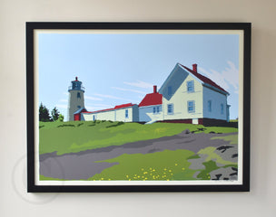 Monhegan Light Art Print 24" x 36" Framed Travel Poster By Alan Claude - Maine