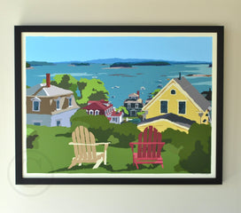 Stonington Harbor Art Print 36" x 53" Travel Poster By Alan Claude - Maine