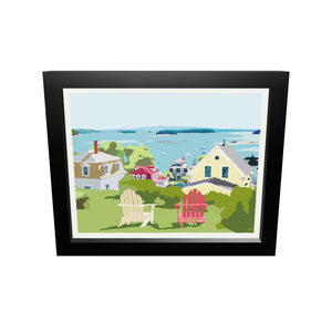 Stonington Harbor Art Print 8" x 10" Horizontal Framed Wall Poster By Alan Claude - Maine