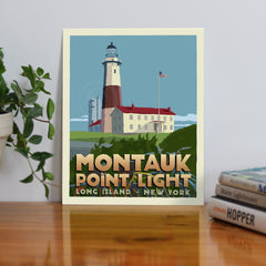 Montauk Point Light Art Print 8" x 10" Travel Poster By Alan Claude