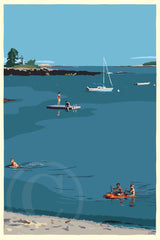 Ocean Point Swimmers Art Print 24" x 36" Wall Poster By Alan Claude - Maine