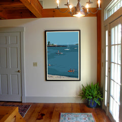 Ocean Point Swimmers Art Print 24" x 36" Framed Wall Poster By Alan Claude - Maine