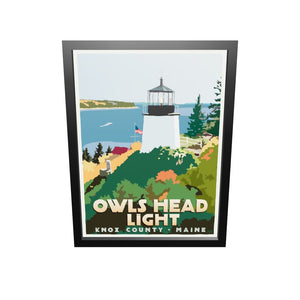 Above Owls Head Light Art Print 18" x 24" Framed Travel Poster By Alan Claude - Maine