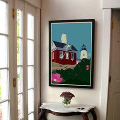 Pemaquid Point Light Bell Art Print 24" x 36" Framed Wall Poster By Alan Claude - Maine