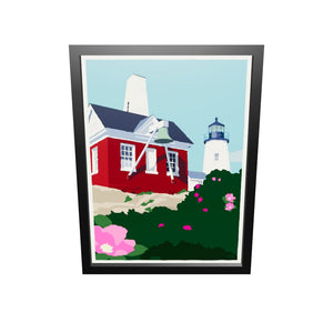 Pemaquid Point Light Bell Art Print 18" x 24" Framed Wall Poster By Alan Claude - Maine