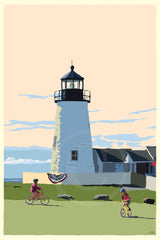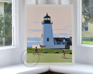 Pemaquid Bicycle Girls Art Print 36" x 53" Travel Poster By Alan Claude - Maine