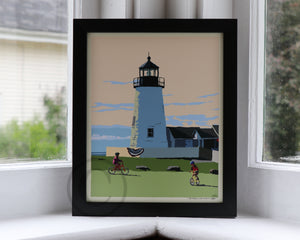 Pemaquid Bicycle Girls Art Print 24" x 36" Travel Poster By Alan Claude - Maine