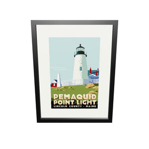 Pemaquid Point Light Art Print 18" x 24" Framed Travel Poster By Alan Claude - Maine
