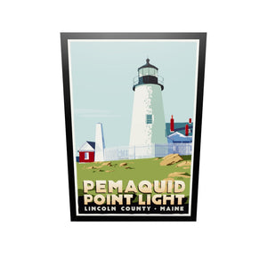 Pemaquid Point Light Art Print 36" x 53" Framed Travel Poster By Alan Claude - Maine