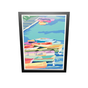 Perkins Cove Dinghies Art Print 18" x 24" Vertical Framed Wall Poster By Alan Claude - Maine