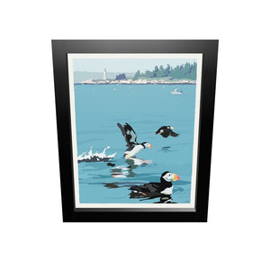 Puffins At Franklin Island Art Print 8" x 10" Framed Wall Poster By Alan Claude - Maine