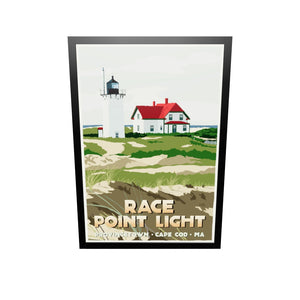 Race Point Light Art Print 36" x 53" Framed Travel Poster By Alan Claude - Massachusetts