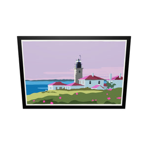 Sunrise At Beavertail Light Art Print 36" x 53" Framed Wall Poster By Alan Claude - Rhode Island