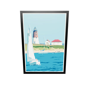 Point Judith Light Art Print 36" x 53" Framed Travel Poster By Alan Claude - Rhode Island