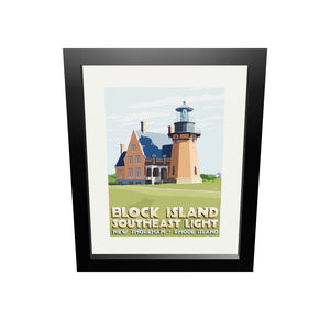 Block Island Southeast Light Art Print 8" x 10" Framed Travel Poster - Rhode Island