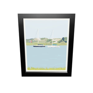 Sailboats at Sandy Neck Art Print 8" x 10" Framed Travel Poster By Alan Claude - Cape Cod