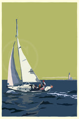 Sailing Half Way Rock Light Art Print 24" x 36" Wall Poster By Alan Claude - Maine