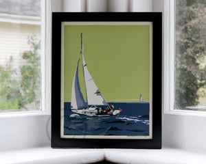 Sailing Half Way Rock Light Art Print 8" x 10" Travel Poster By Alan Claude - Maine