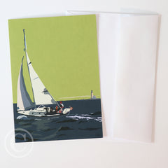 Sailing Half Way Rock Light Notecard 5" x 7" - Maine
